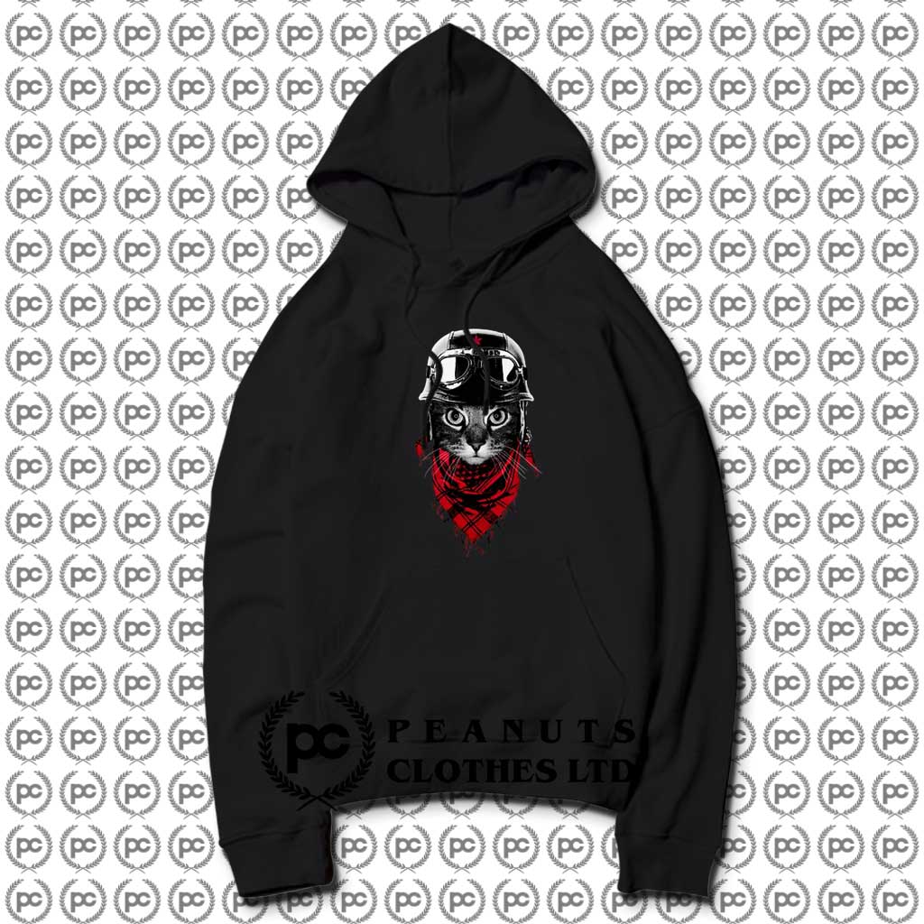 Cat With Red Scarf And Biker Helmet Hoodie – PeanutsClothes.com