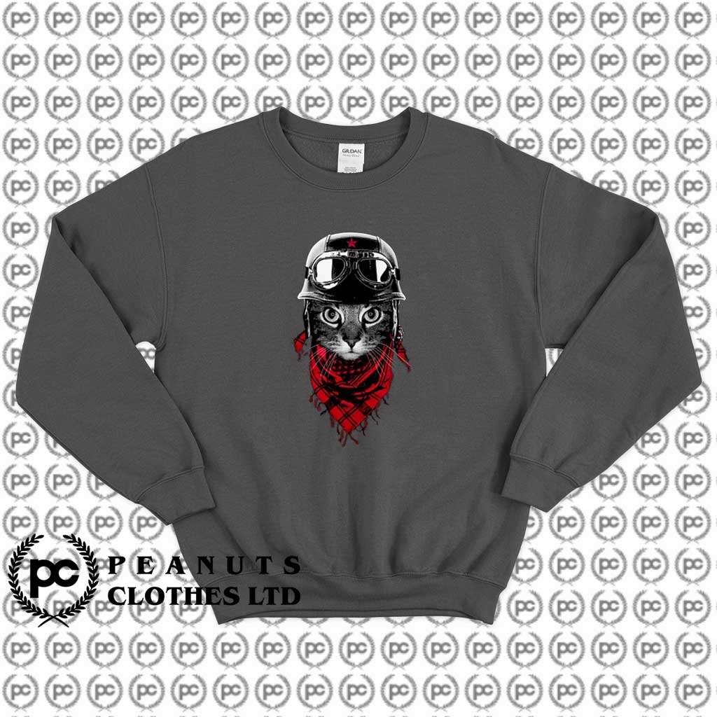 Cat With Red Scarf And Biker Helmet Sweatshirt – Sweatshirt Hypebeast Style – PeanutsClothes.com