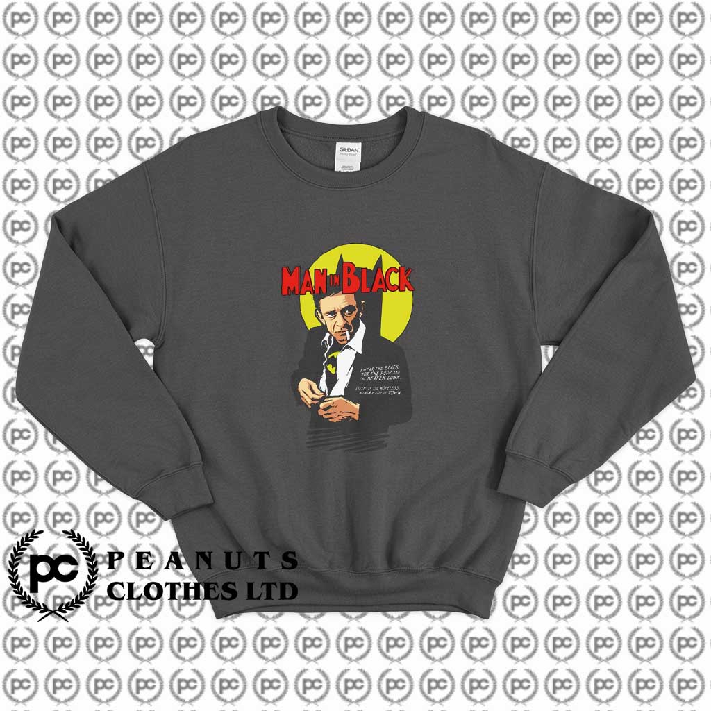 Welcome to Peanuts Clothes. Ltd | PeanutsClothes.com. You’ve now found the staple Sweatshirt of your wardrobe. It’s made of thicker, heavier cotton, but it’s still soft and comfy. And the double stitching on the neckline and sleeves add more durability to what is sure to be a favorite!. Johnny Cash Man in Black Sweatshirt is everything you’ve dreamed of and more. It feels soft and lightweight, with the right amount of stretch.
