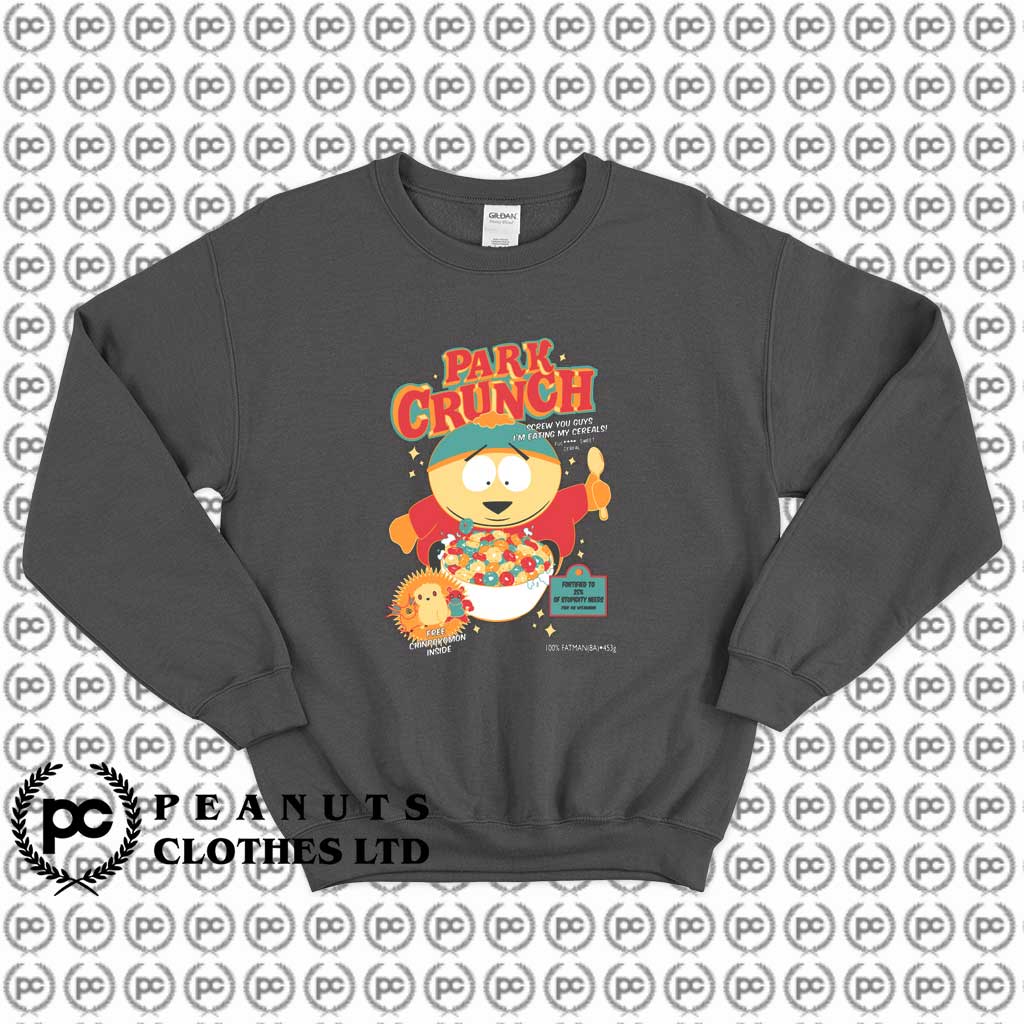Welcome to Peanuts Clothes. Ltd | PeanutsClothes.com. You’ve now found the staple Sweatshirt of your wardrobe. It’s made of thicker, heavier cotton, but it’s still soft and comfy. And the double stitching on the neckline and sleeves add more durability to what is sure to be a favorite!. South Park Cart Crunch Cover Sweatshirt is everything you’ve dreamed of and more. It feels soft and lightweight, with the right amount of stretch.